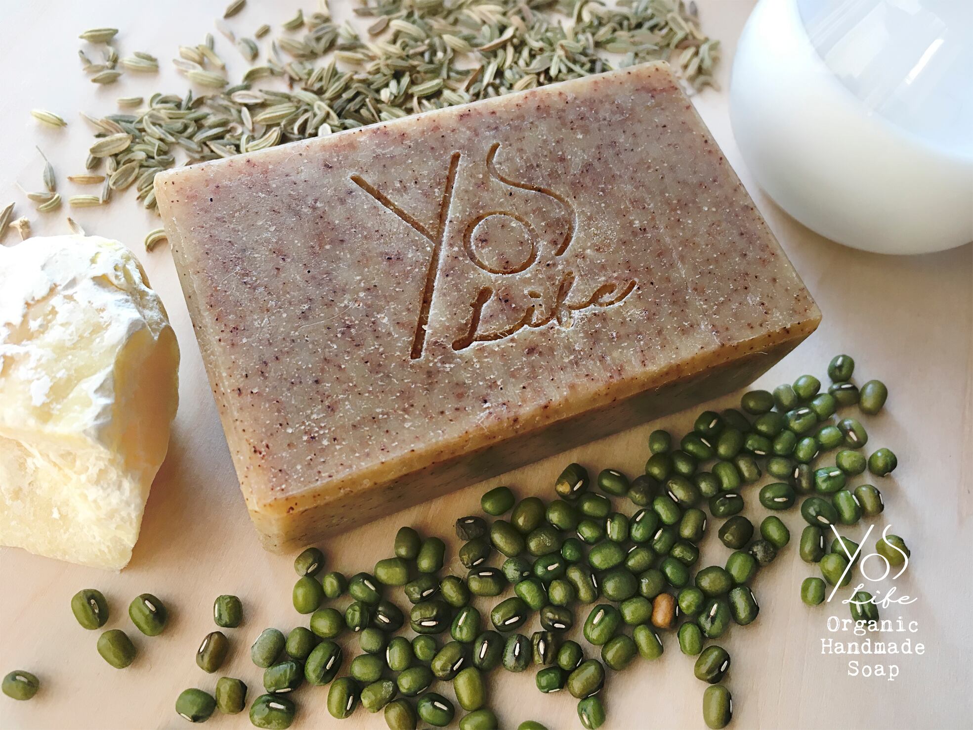 フェンネルと牛乳のオーガニック石けんにヘチマスポンジが付いた数量限定のお得なセットです。